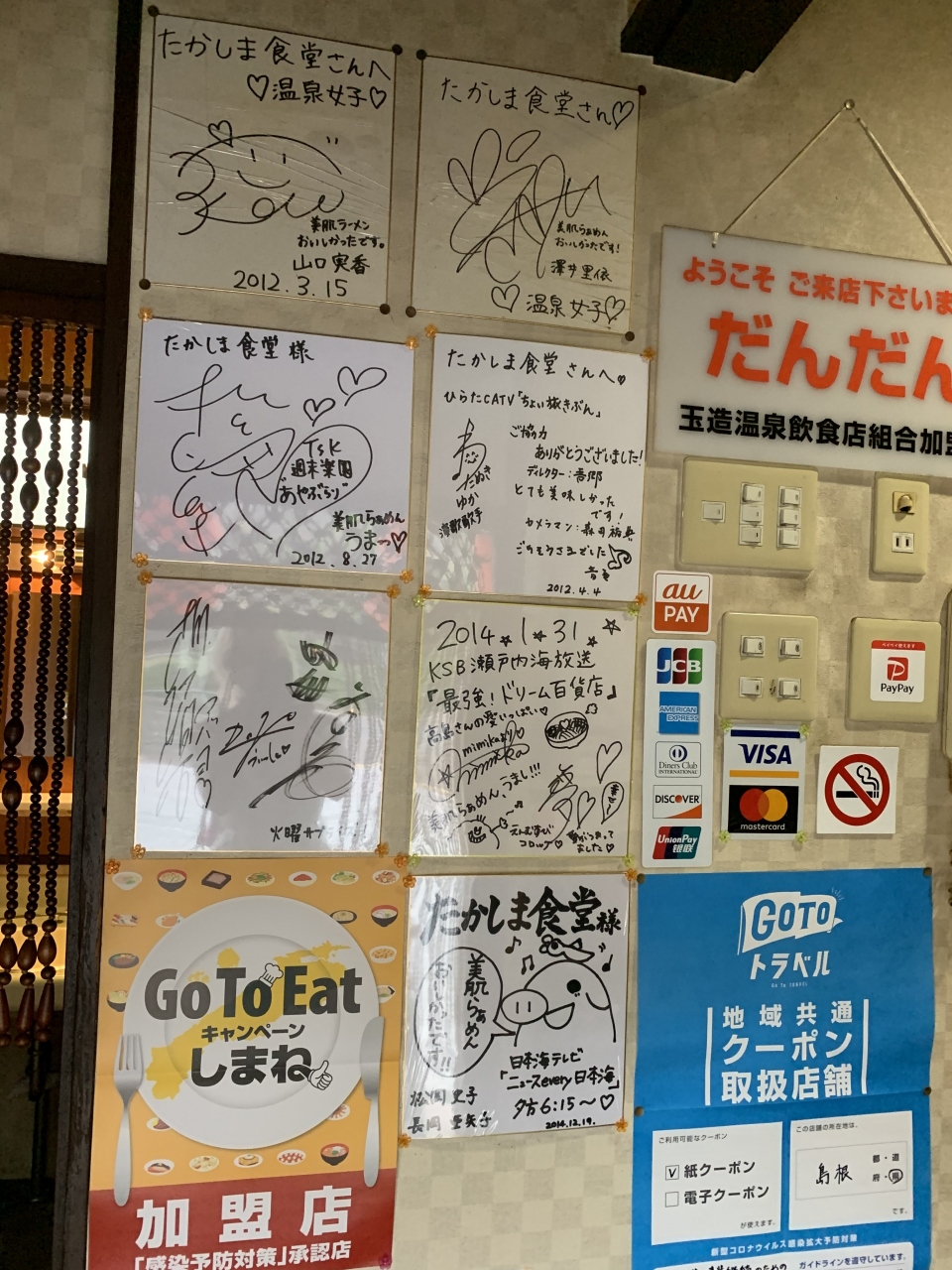 お店に入ると、いちばん目立つところに たくさんの色紙 が飾ってありました。