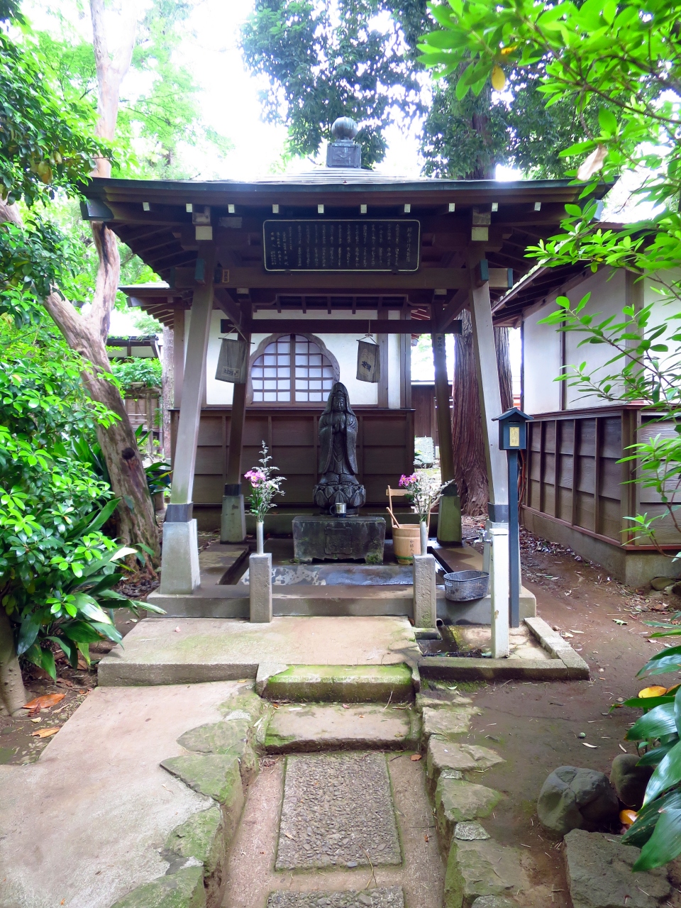 This Nichiren-shu temple is located on the east side of Senzoku Pond. The temple grounds are covered with trees and bamboos, which makes the air feel dense and stuffy during the humid summer season, but it is very quiet despite the park and nursery school right next to it. Even on weekends, there are not many visitors, so it is a perfect place to visit when strolling around the Senzoku-ike area.