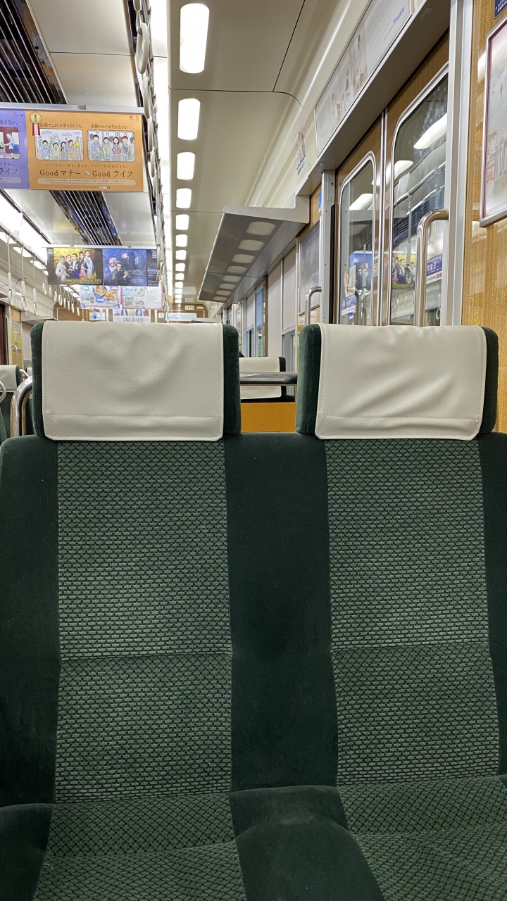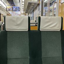 京都、大阪、神戸の3都市および近郊に電車がある阪急。いずれも臙脂色、マルーン色の電車で運行しています。駅は案外老朽化しているところもありますし、トイレもえ?という感じの場所もあります。とはいえ、電車は非常にきれいにキープしていて京都線はご覧の通りの座席に無料で乗れるのです。