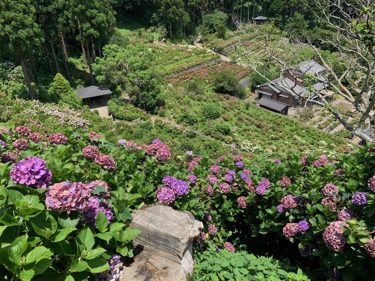平日に、車で出かけました。ひと山まるごと紫陽花が植栽されていて、紫陽花好きとしては、たまらない風景でした。散策路は、ちょっとした山登り、雨の日は滑って危険ということで、山エリアの散策路へは上がれないようですので、晴れた日を選んで行ったほうがいいかもしれません。