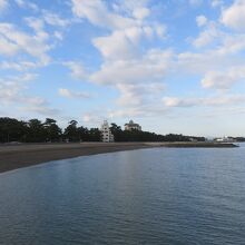 きれいな砂浜の海岸で有名な夫婦岩に二見興玉神社などもあり観光地となっています。なので前には旅館やホテルなどが並んでいました。朝に訪れましたが砂浜にはあまり人が多くなくてのんびりできます。神社のほうに観光客は集中している感じでした。