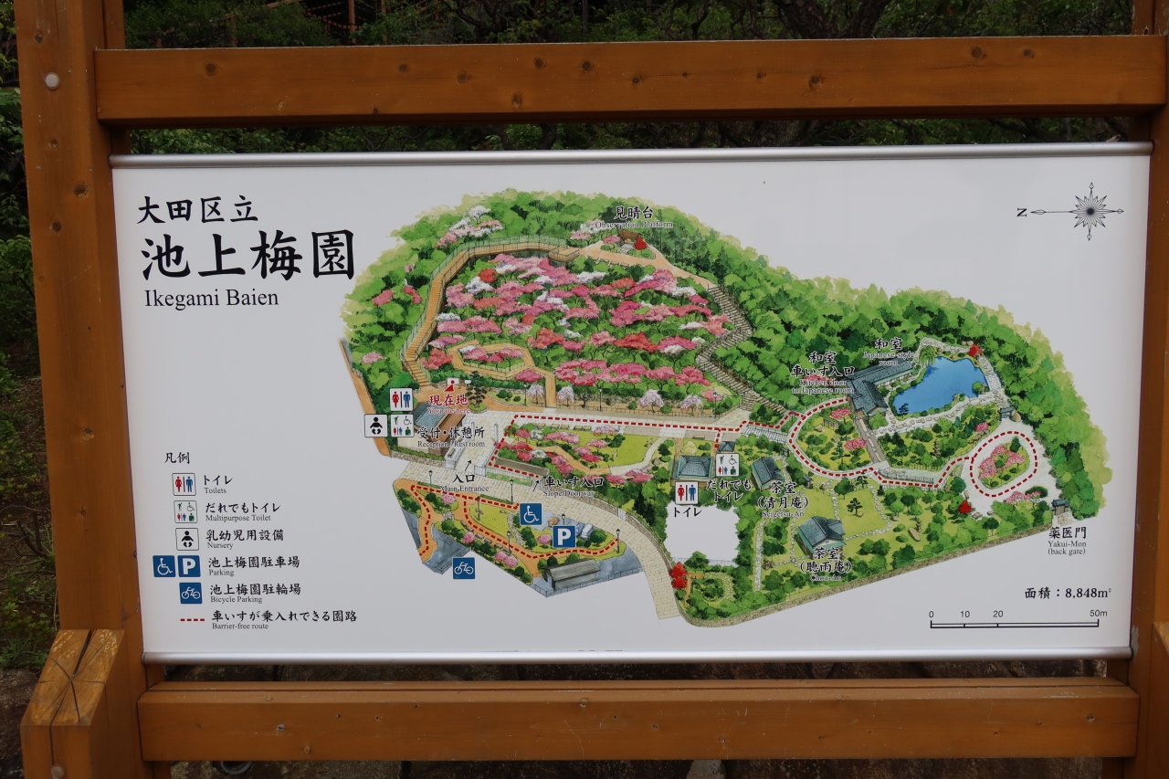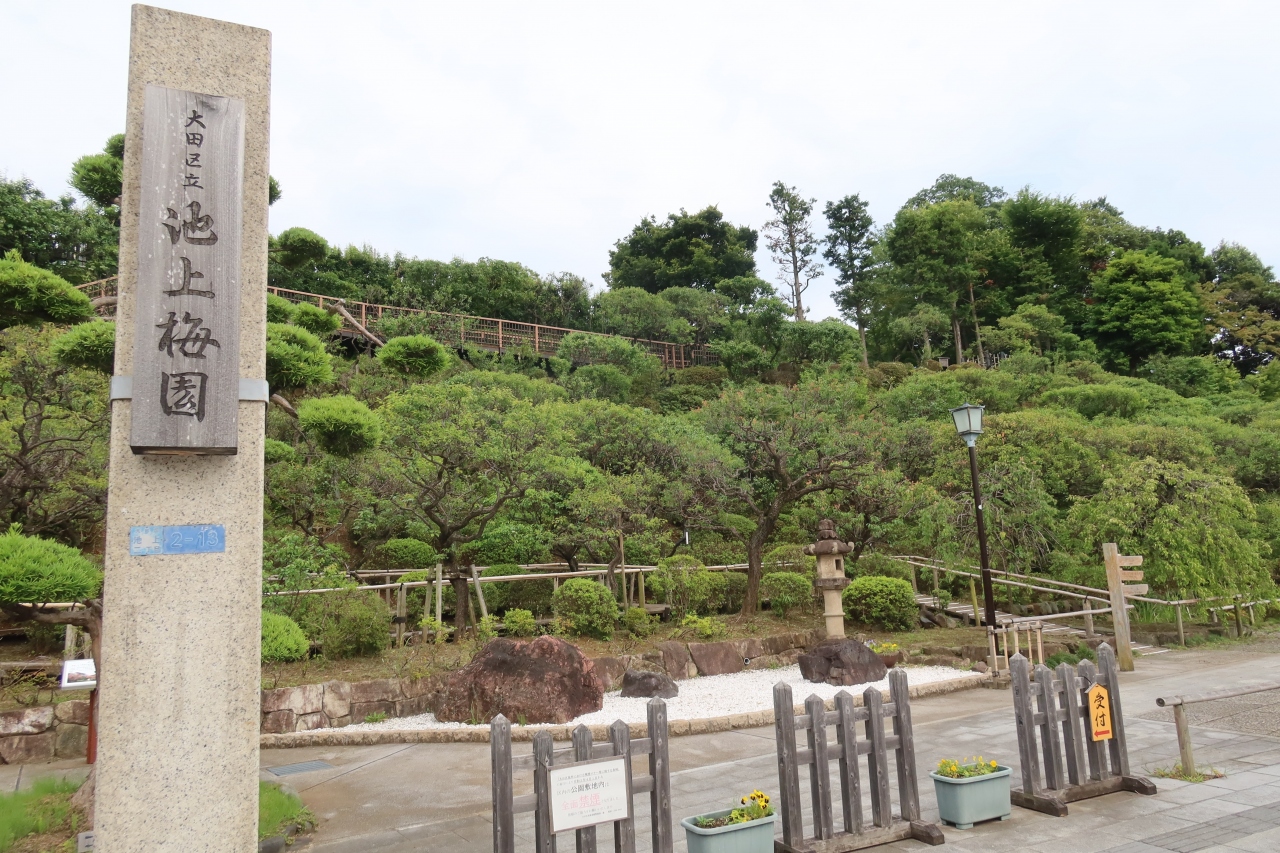 池上本門寺の境内の北東、第二京阪の本門寺入口交差点を東に行って高架を潜ったすぐ右手に池上梅園があります。園内の斜面には沢山の梅の木が植えられており2,3月は梅の花が綺麗だと思われますが、梅雨時期は葉桜ならぬ葉梅なので、入園料を払ってはいるまでもありません。