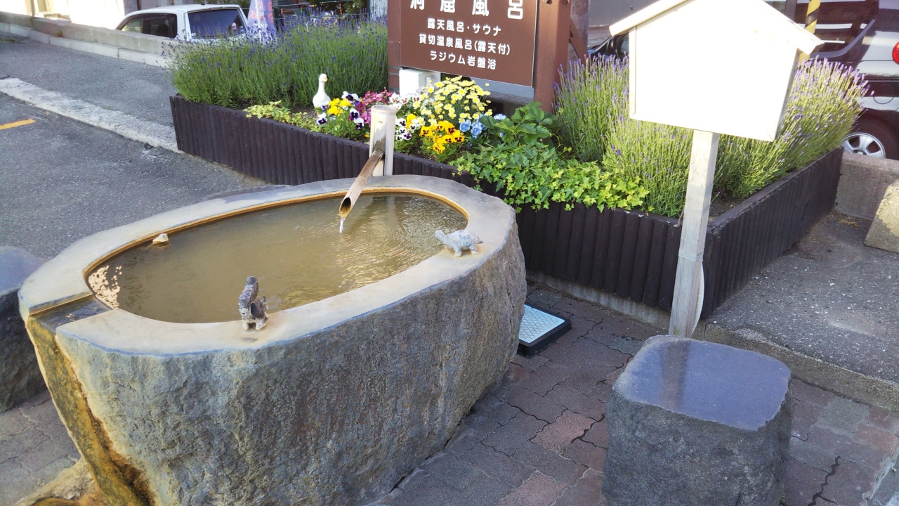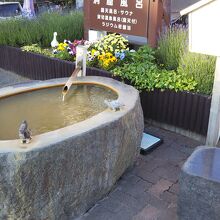 こちらは手湯のみですが、石できたモニュメントに近い椅子が用意されています。