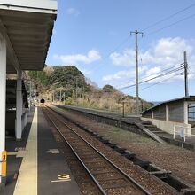 日本海を見下ろすことができる1番線ホームには入ることができ、海を見渡すためのベンチも置かれている。気持ちよく素晴らしく飽きない風景。