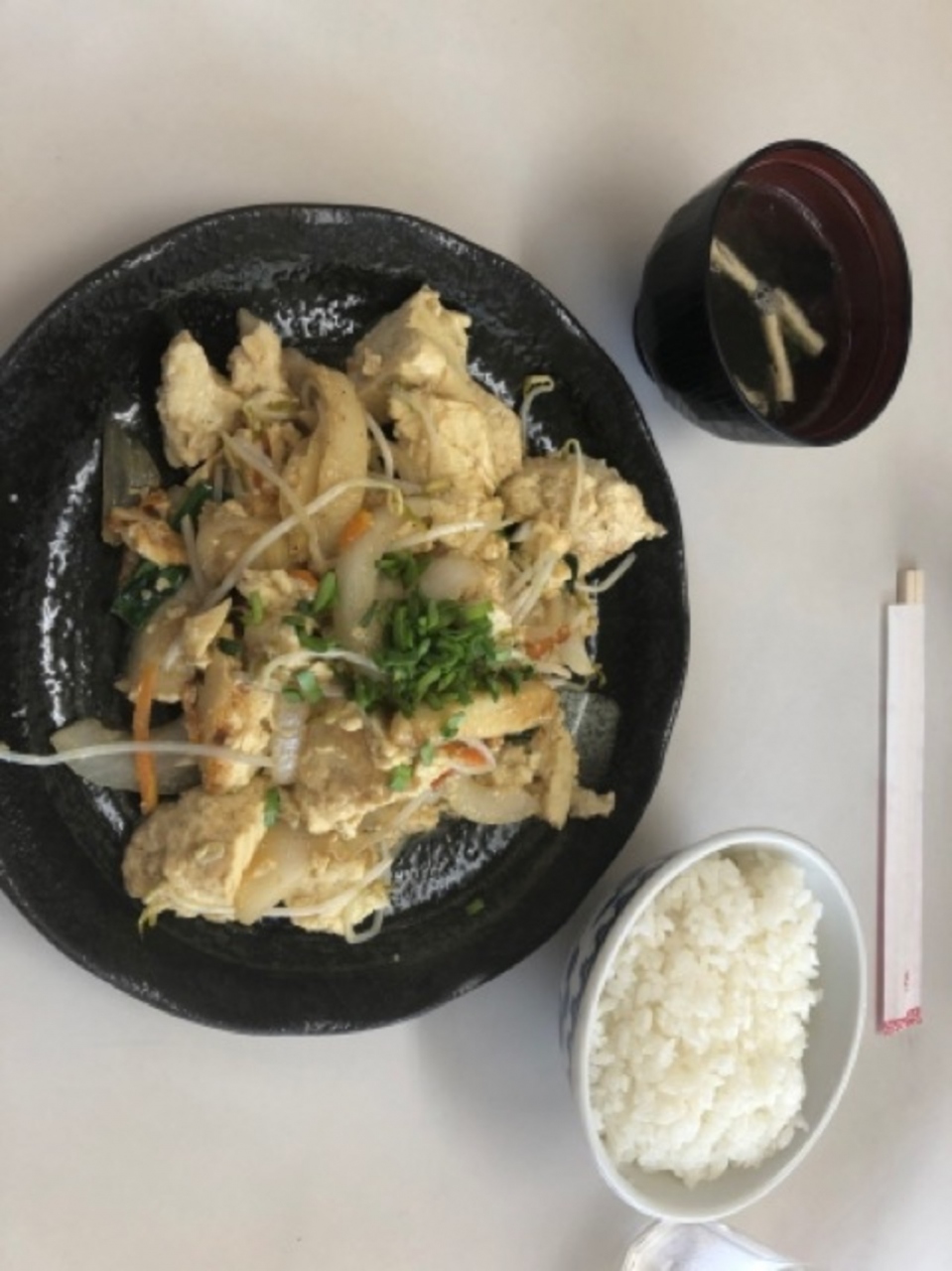 街中らは少し離れてますが歩いてもいけます。ゴーヤチャンプルやトーフチャンプルなどの他にもカツ丼やカレーがありました。トーフチャンプルは味が少し薄め、それに比べゴーヤチャンプルは濃いめの味付けで美味しい買ったです。夕方6時閉店なので、夕ご飯をあてにしていくと閉まってしまいますので早めに行ってください。値段も安いですね。