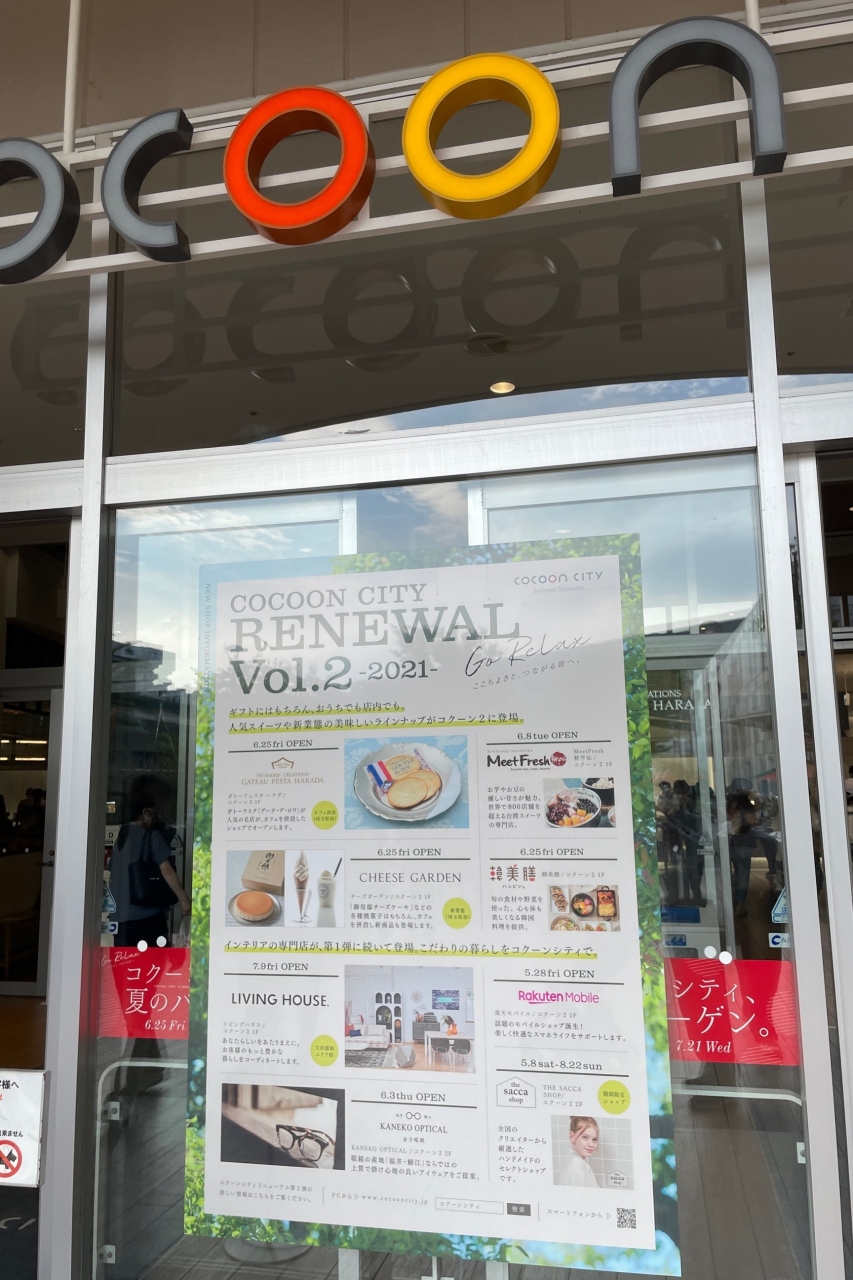 コクーン2のエントランス入ってすぐに正面、好立地に出店です。