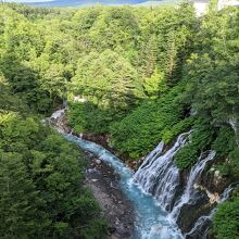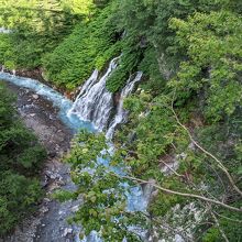 あまり期待せずに行ったからか、とても感動する光景。近くには行けず、実際には大きな橋の上から眺める感じにはなる。結構な高さがあり、高所恐怖症の人は要注意。しかしエメラルドグリーン色の川に流れこむ白色の滝はとても美しい。青い白金の池にも引けを取らないどころか勝っている。