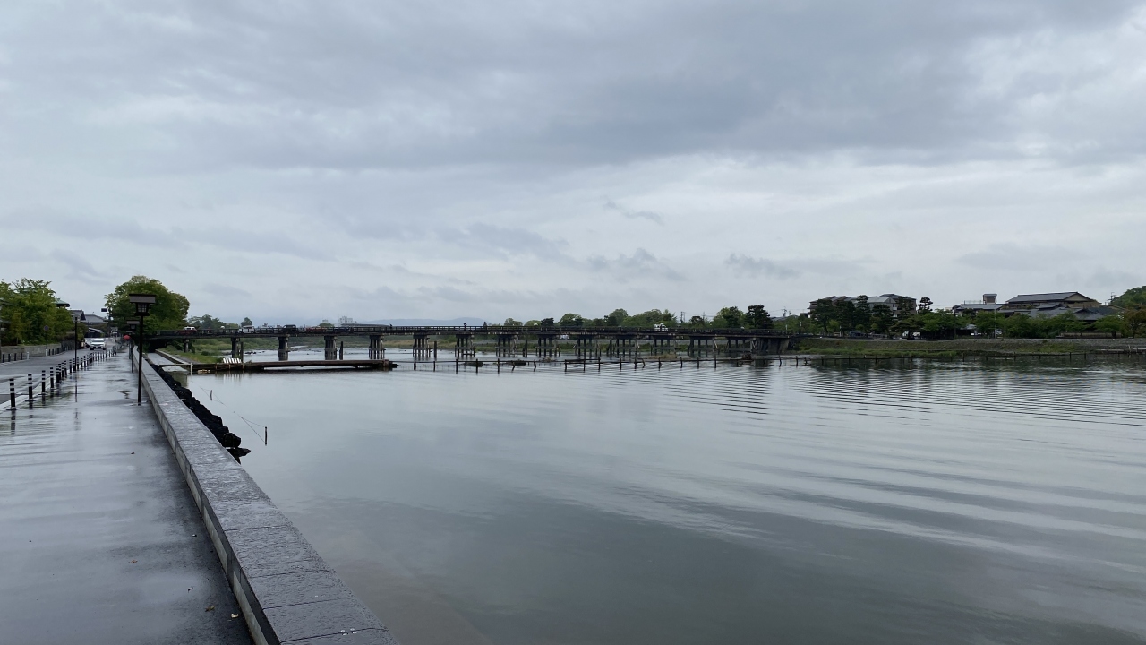 嵐山エリアでは特にゆったりした感じがする桂川。ここも淀川の支流になる川ですね。最近の京都はずっと雨だったので、水量もかなり増えていましたし、桂川沿いの一部の河川敷は入らないほうがいいようなレベルでした。