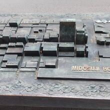 御堂筋は皆さんご存知の大阪のメインストリートです。心斎橋をぶらぶらしているときにオシャレな立体の石碑のような地図を見つけました。ハイブランドのお店や大丸心斎橋店、高級ホテルなどがずらずらっと通り沿いに並んでいます。