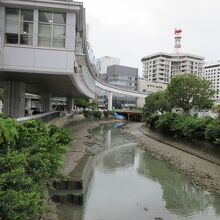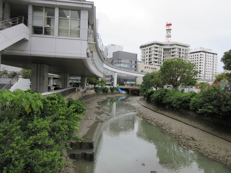 ゆいレールを県庁前駅で降りました。ゆいレールからも沿うように流れている久茂地川が見えました。降りてから見ると、特別にきれいともいえませんでしたが、市街地を流れているにしては、ゴミなども汚れているわけでもありませんでした。