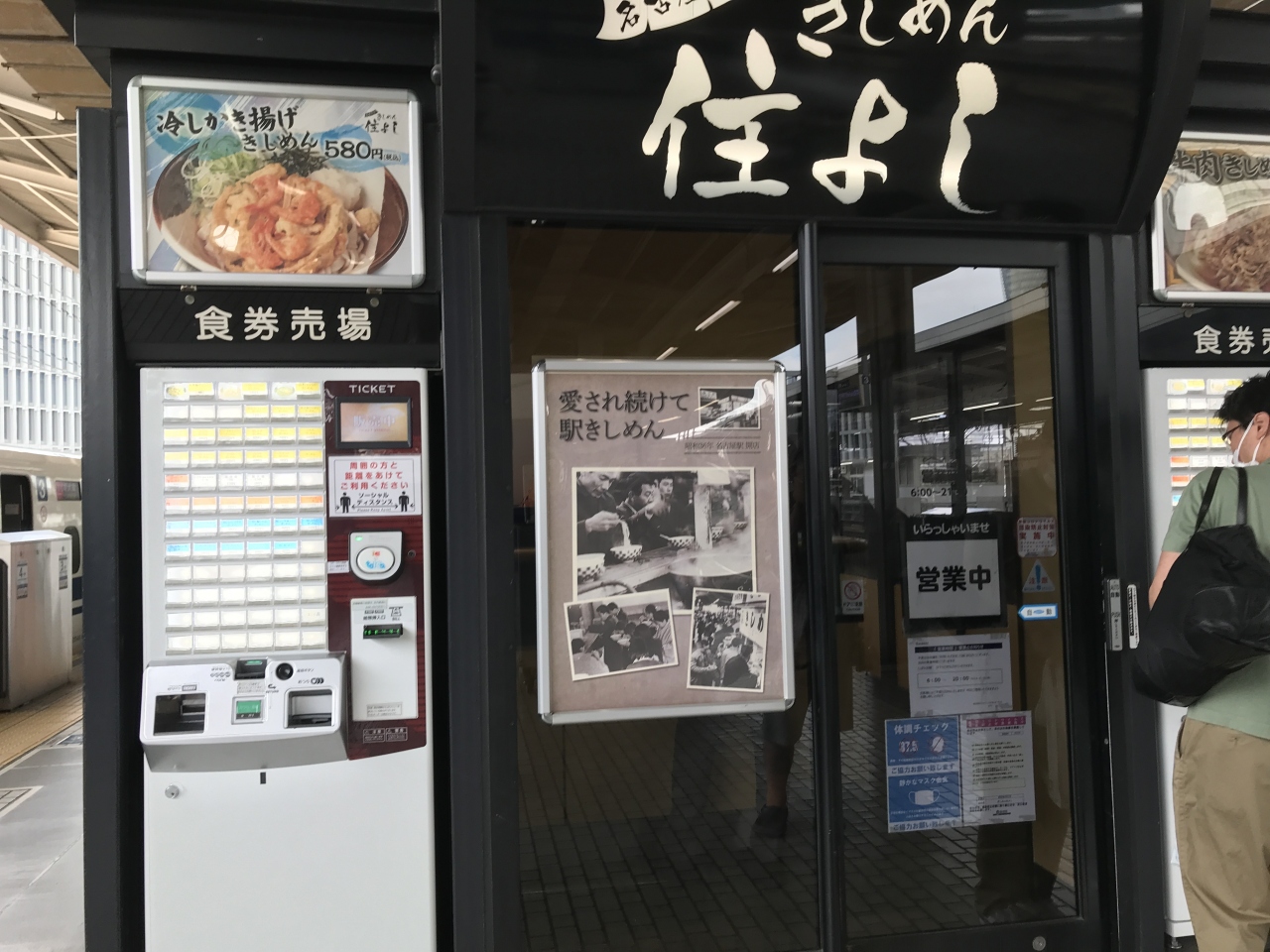 乗換の合間にサッと食事を済ませるには最適な場所です。新幹線は各ホームに店舗がありますが実際の位置は4-5号車付近なので真ん中より少し前付近と覚えておくと良いかもしれません。ちなみにホームのスペースの都合もあり、店内は立席だけでけっこう狭くなっています。