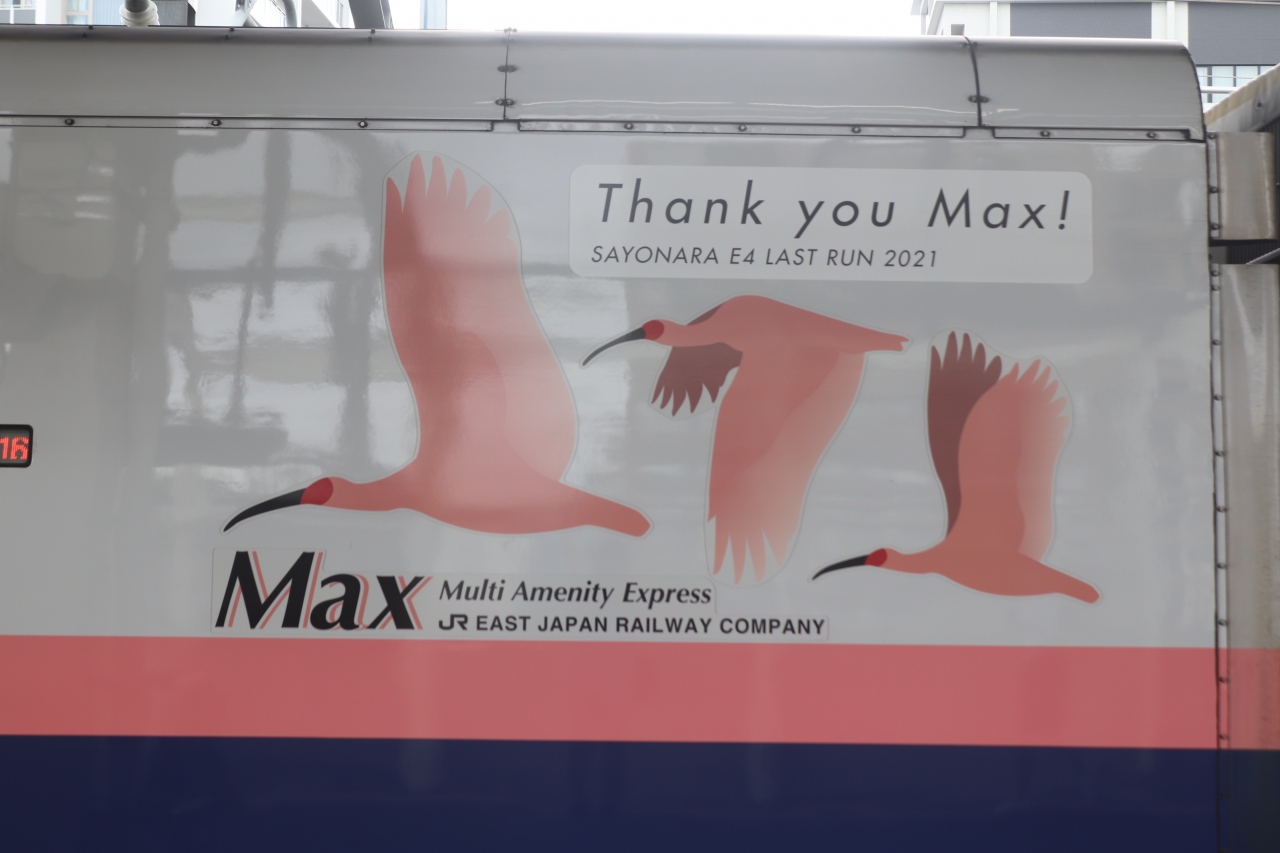 E4系の引退が正式に21年10月に決まり、オール2階建て、快適性を犠牲にして輸送力重視のMAXも見納めとなります。ホームで写真を撮る旅行客も増えてきました。久しぶりの対面でした。ちょっと受け入れづらいいかつい顔、横から見ると壁のような大きな車体、あとわずかです。