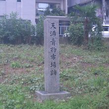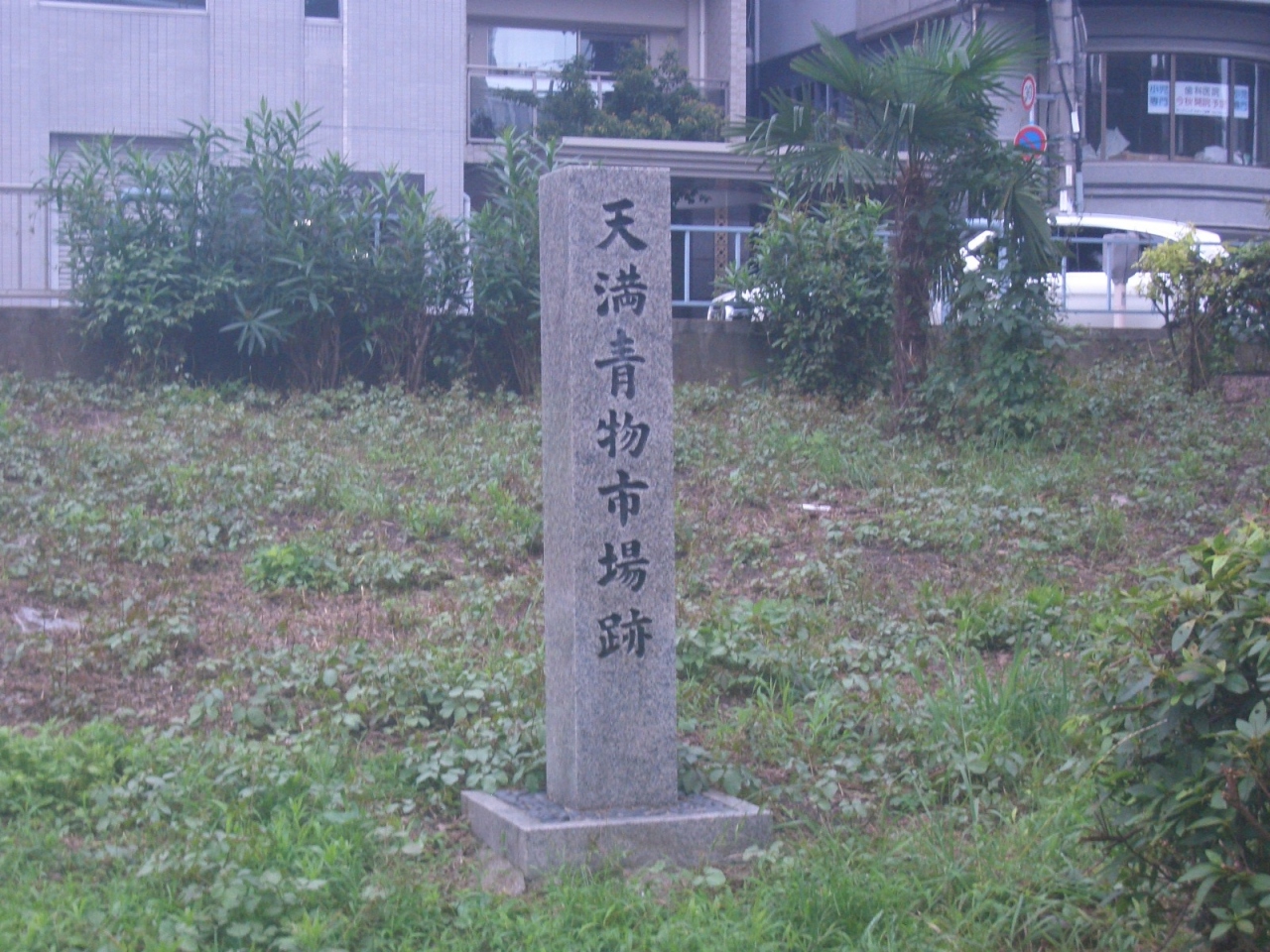 天満青物市場跡の石碑は、南天満公園の片隅にあります。7月に近辺を散策した時に見つけました。天満青物市場は、江戸時代に堂島米市場、雑喉場魚市場とともに大阪三大市場の一つとなっており、青果物の取り扱いを独占していたとのことです。1931年(昭和6年)に廃止され、大阪中央卸売市場に包括されたとのことです。