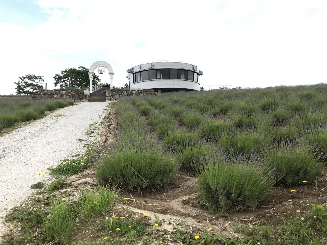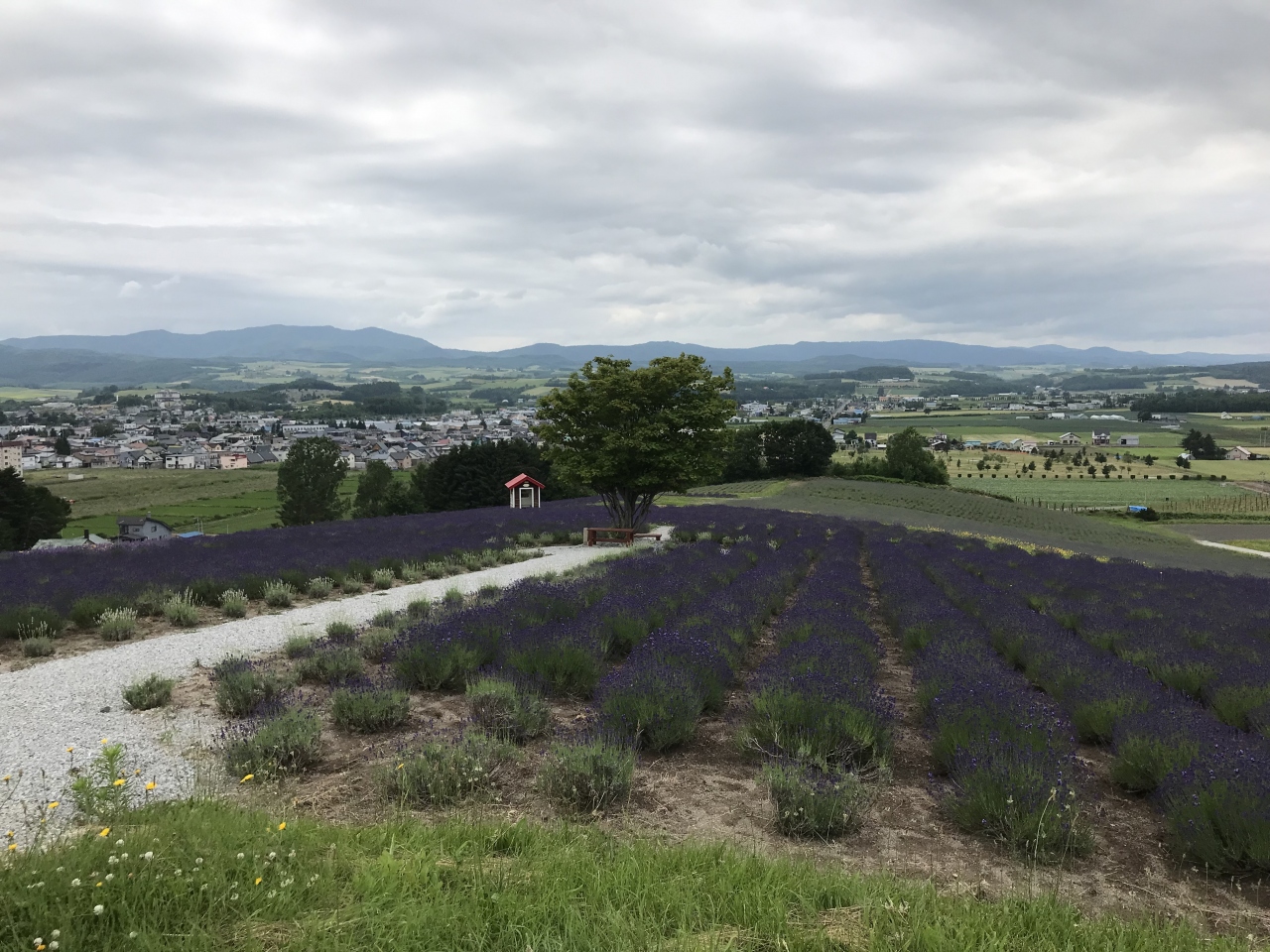 2021年7月2日に訪問しました。早咲きの「濃紫早咲」と遅咲きの「おかむらさき」の2種が植えられていますが、遅咲きの品種が主なので、全体的に見頃はもう少し先という印象でした。丘陵地帯をうまく利用したラベンダー園なので、丘からの眺めが良くですし、全体の景観もとても良かったです。「かみふらの八景」の一つにもなっています。