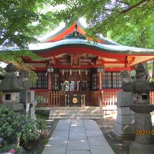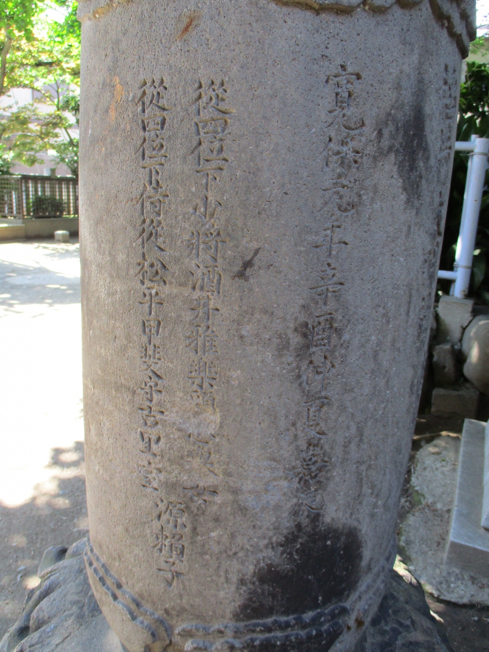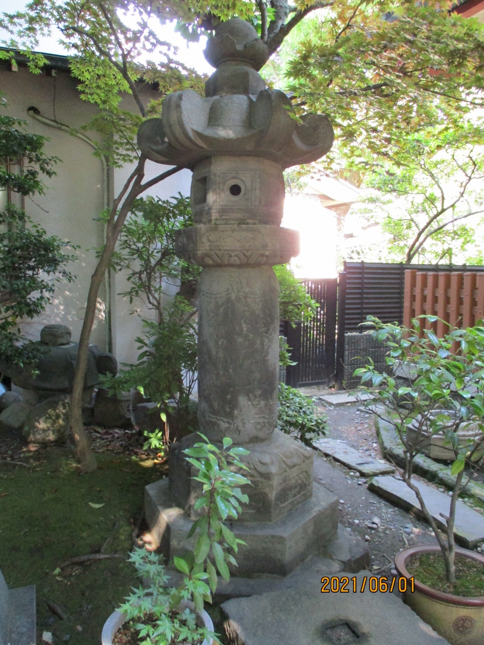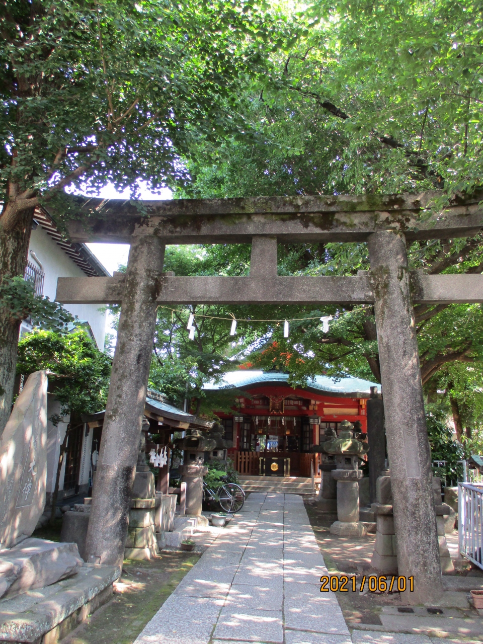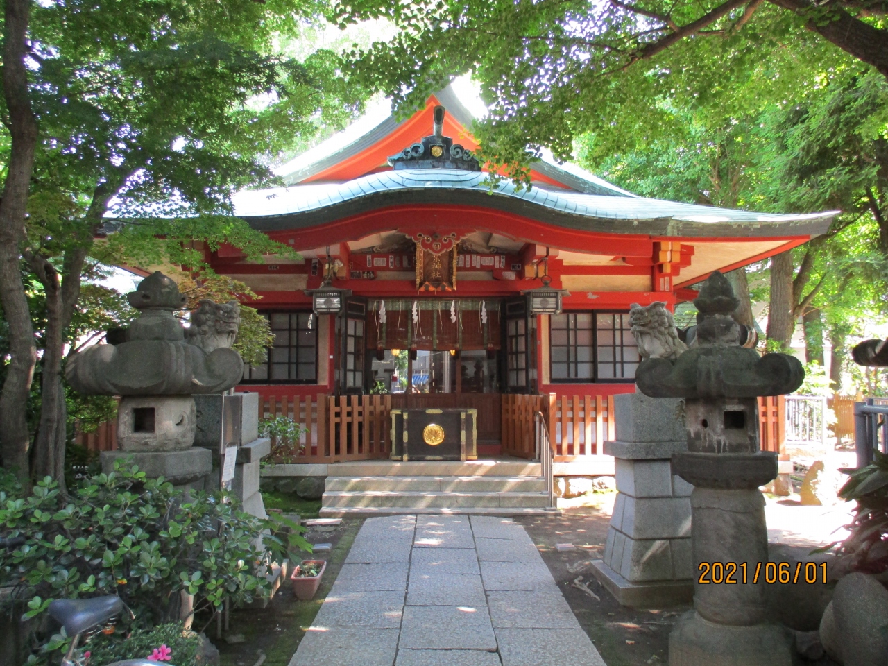 東武曳舟駅から散策していて、神社があったのでお詣りしました。鳥居をくぐって境内に入ると、銅屋根に赤い建物美しいお社が建っていました。お社は比較的新しいようですが、境内に立っている石灯篭が、とても時代を感じさせてくれる古い石灯籠でした。江戸幕府の幕閣が寄進した石灯籠のようでした。