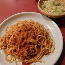 内幸町交差点近くの日比谷シティ地下1階のイタリアンレストランです。ランチ時に訪れると、付近の会社員の人達が大勢入っていて、かなり混んでいました。ランチのパスタを注文すると、パスタの量が選べ、レギュラーで注文しましたが、かなりのボリューム感がありました。サラダとドリンクも付いていて、男性でも満足の出来るボリュームなので、大盛況なのが納得できる感じでした。