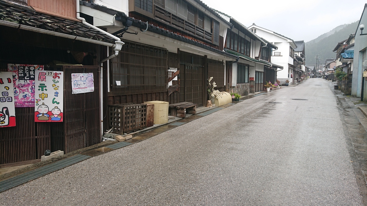 その名の通り、足助中心部の西側の区域です。高層建築物等は存在せず、全般的に昔の町並みが良く保全されています。また、古い建物以外でも、少なくとも町並みの雰囲気を壊さないような外観のものが多く、地域全体で大変な努力をされているのだろうな、と感じました。