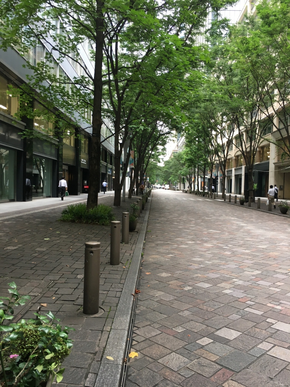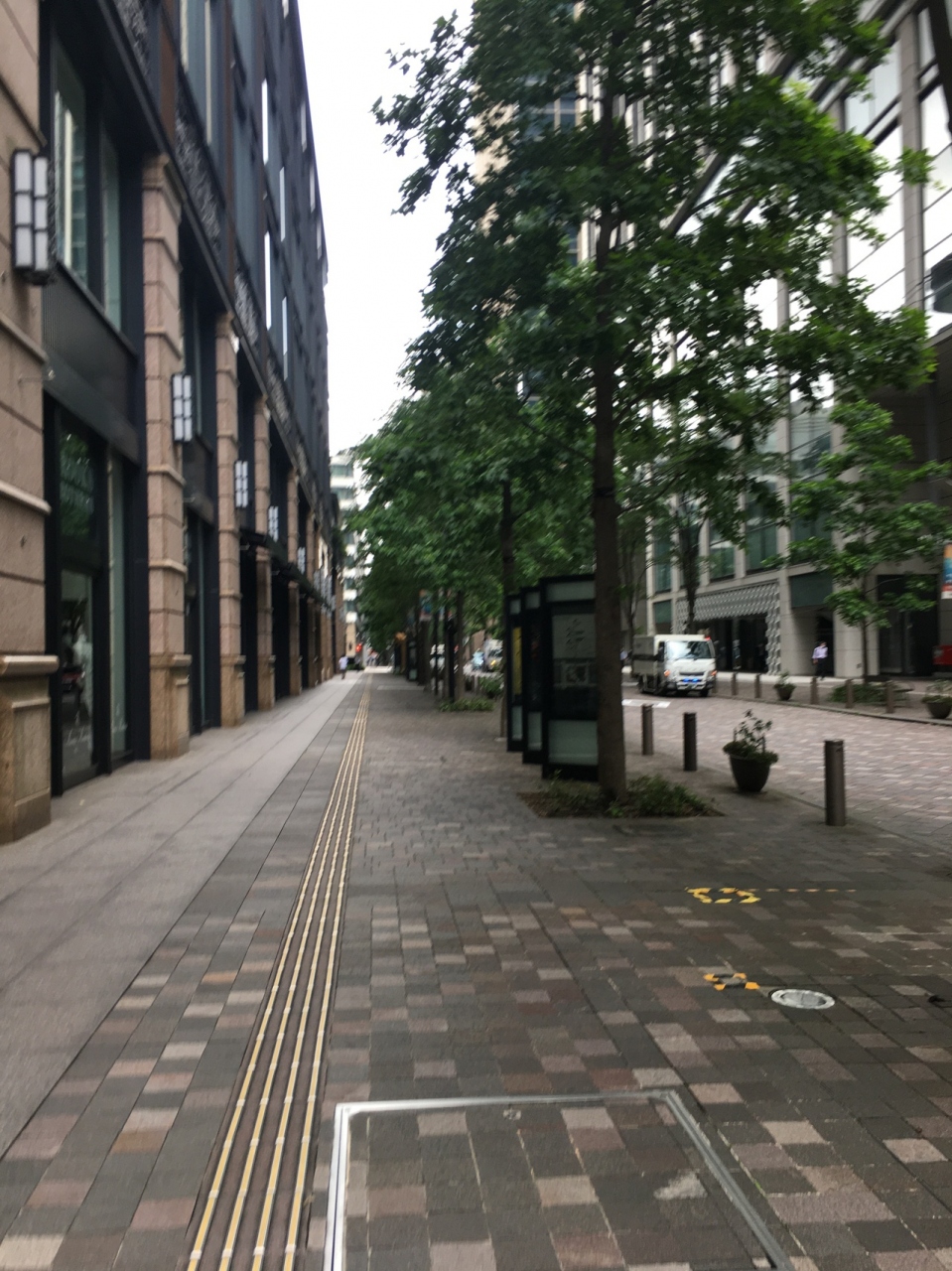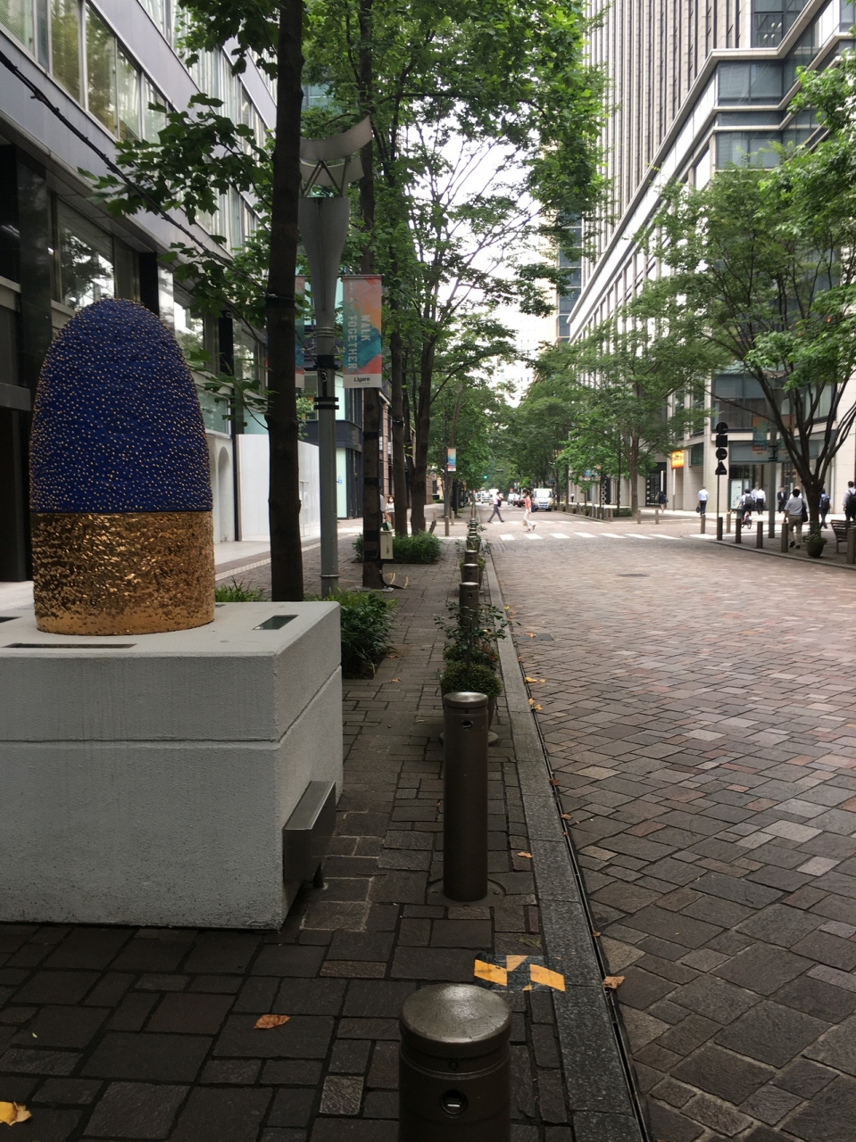 東京駅と皇居の間にある道で、東京駅付近から有楽町駅から方面を結んでいます。沿道にはベンチもあり木々も立っているのでヨーロッパ風の道ぽく歩きやすかったです。途中いくつかオブジェがあり、見学しながら歩きました。