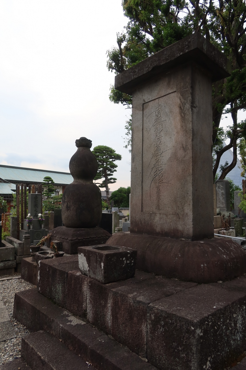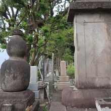 池上本門寺の大坊坂を下って右側に行った所にある多宝塔近くにある墓地の中に狩野探幽の墓があります。本門寺には力道山を始め著名人の墓があり、説明板などが設置されているものが多いのですが、狩野探幽の墓は特に説明板も案内板もありません。目印は瓢箪型をした墓石です。これを目印にするとすぐに分かります。