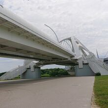 6月中旬の朝の時間帯に訪問しました。白浜公園から眺めると、橋の白さが周囲の情景とうまく調和して、綺麗でした。橋そのもも、スペースが十分に取られているため、空間的にも気分的にも、ゆとりをもって、渡ることができました。