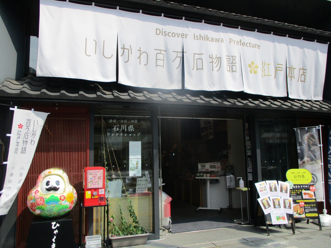 沖縄県のアンテナショップのわしたから数寄屋橋方向へ歩いたところにありました。1階と地下1階がオープンしていて、1階には、金沢で見た九谷焼のお皿や、金箔が入った化粧品などが並んでいました。地下1階には、冷凍の干物などがありました。