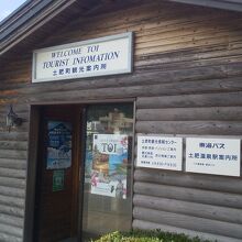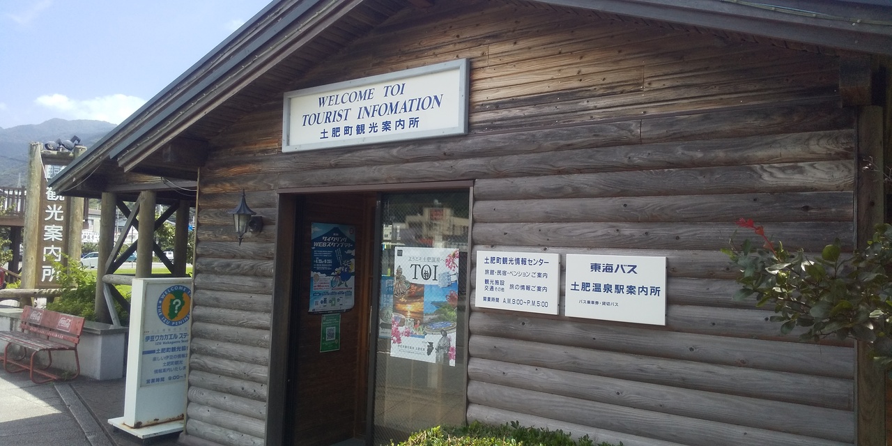 土肥温泉の観光案内所は、松原公園内にあります。ちょうど世界一の花時計の前で、売店と東海バスの待合室を兼ねております。