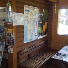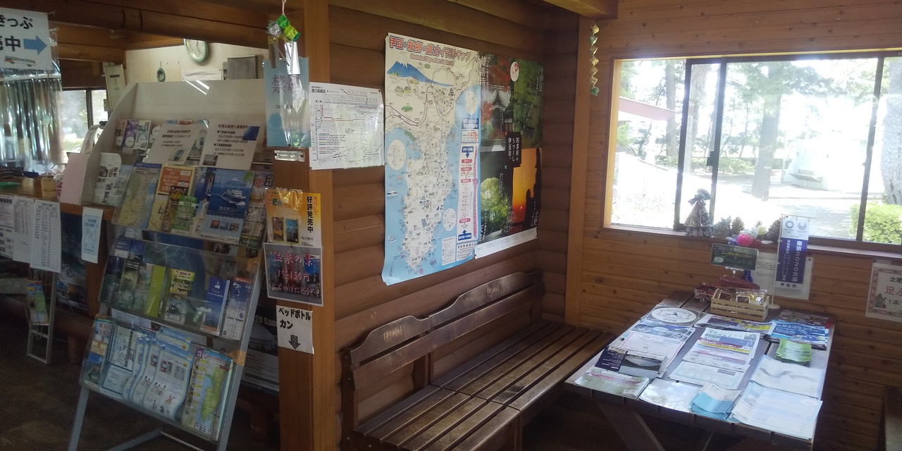 近隣観光のパンフレットや地図があり、旅のプランに役立ちます。当日の急な宿泊手配も受け付けしてくれます。