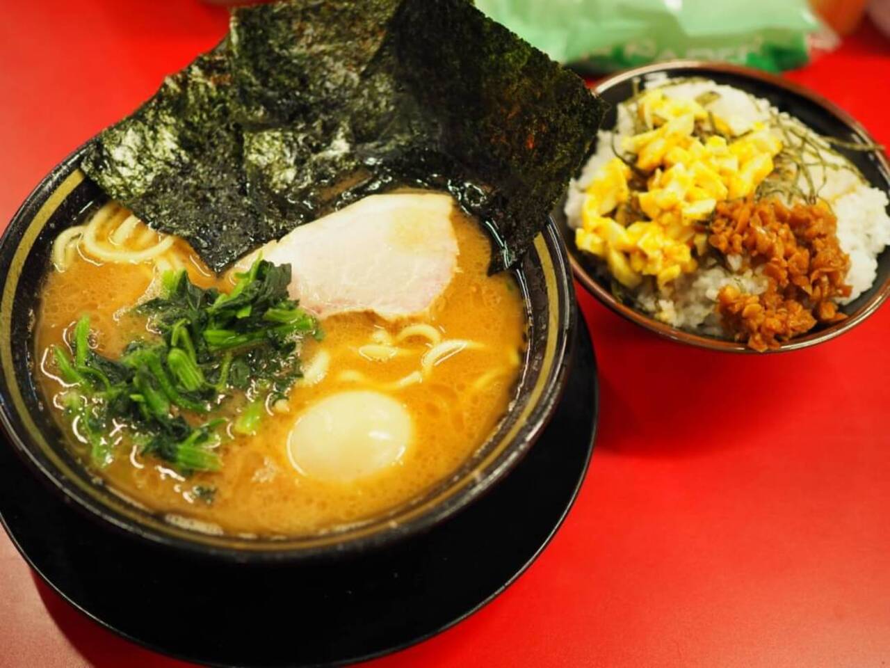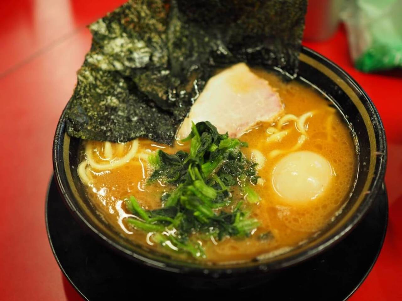 家系ラーメンでも有名店なので列ができていました。濃厚な豚骨醤油。正しく家系ラーメンのスープが楽しめます。