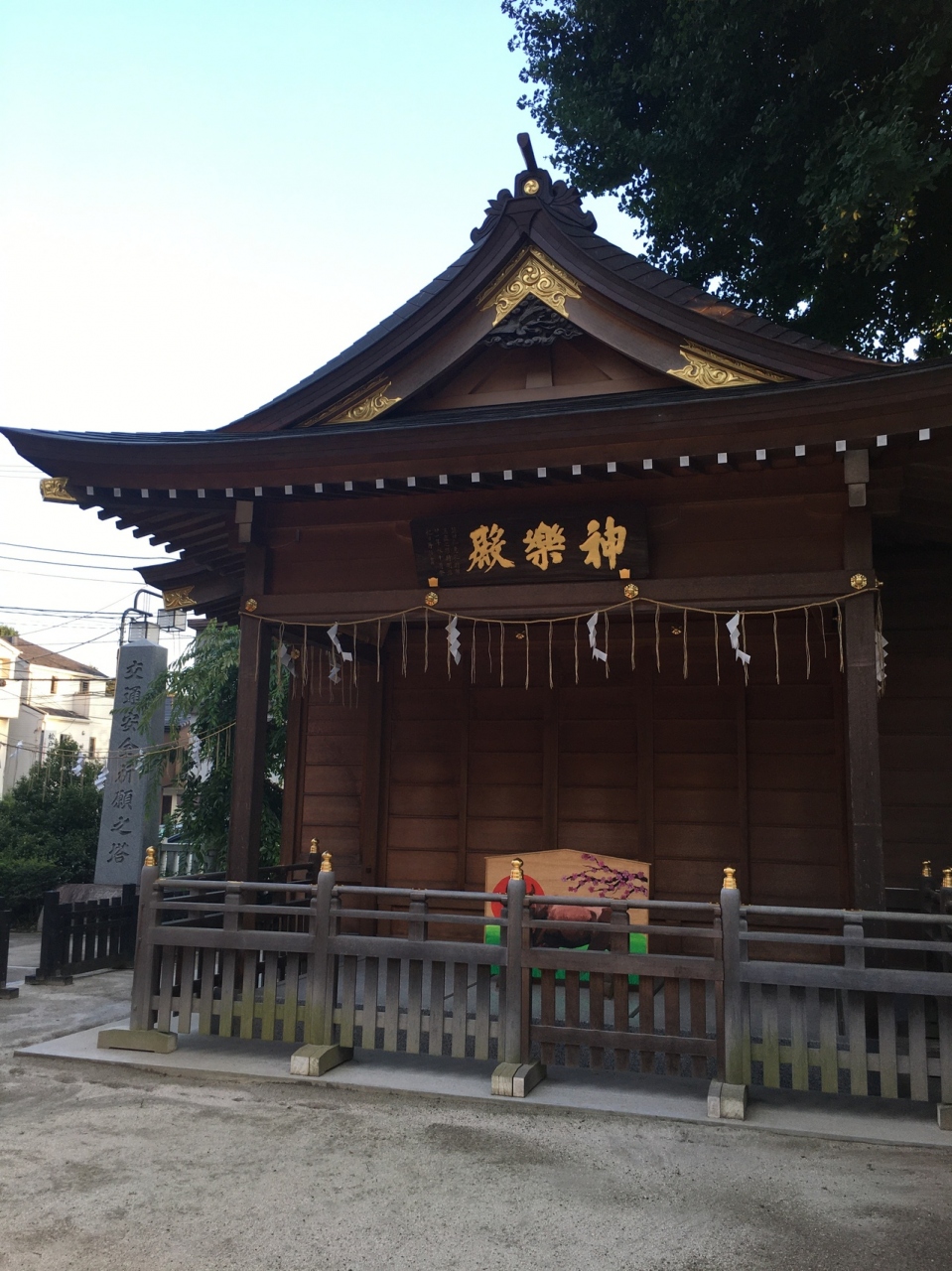 住宅街にあるせいか狭めの境内でしたが本殿、大木、神楽殿等が建っていて、末社のようなものもありました。溶岩で囲まれた末社が趣がありました。大きな大木を囲むようにたくさんの絵馬とおみくじが結ばれていました。松戸駅からも近いので参拝客が絶えない神社でした。