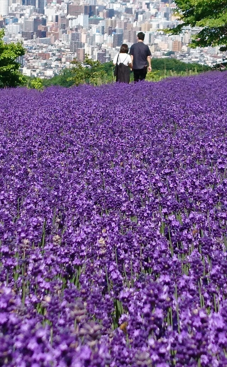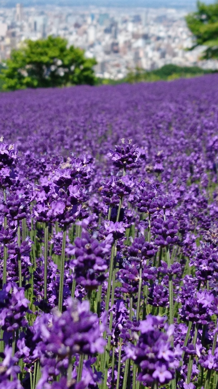 峠にあるラベンダー畑で札幌の町並みを借景として写真を写せますので見ごたえアリです。