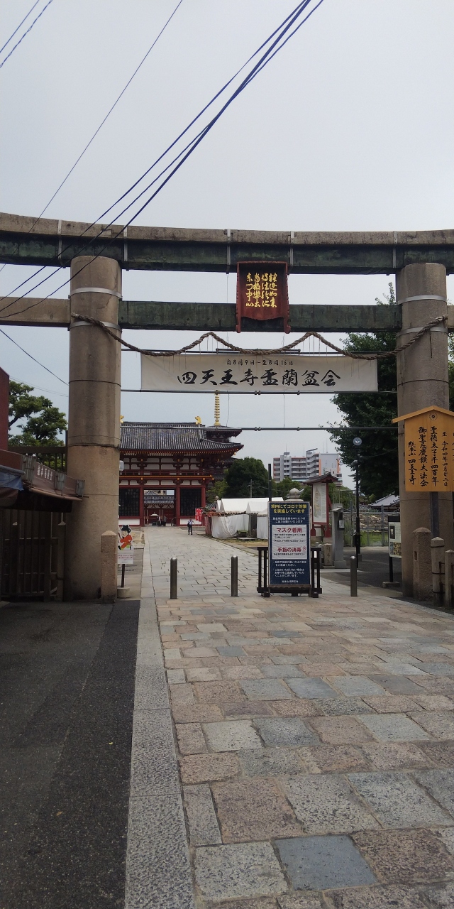 日本佛法最初四天王寺の石碑は四天王寺さんの西側の門のそばにあります。石鳥居も大きなものですが、負けず劣らず大きな石碑です。最寄りの駅は大阪メトロの四天王寺前夕陽ヶ丘駅で、歩いて5分ちょっとだと思います。