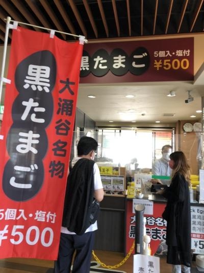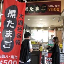普段だったらあまり立ち寄らないタイプの建物なのですが、現在は大涌谷の奥に入る散策路が閉鎖されており、黒たまごを中で買えないので、こちらの黒たまご館で購入しました。