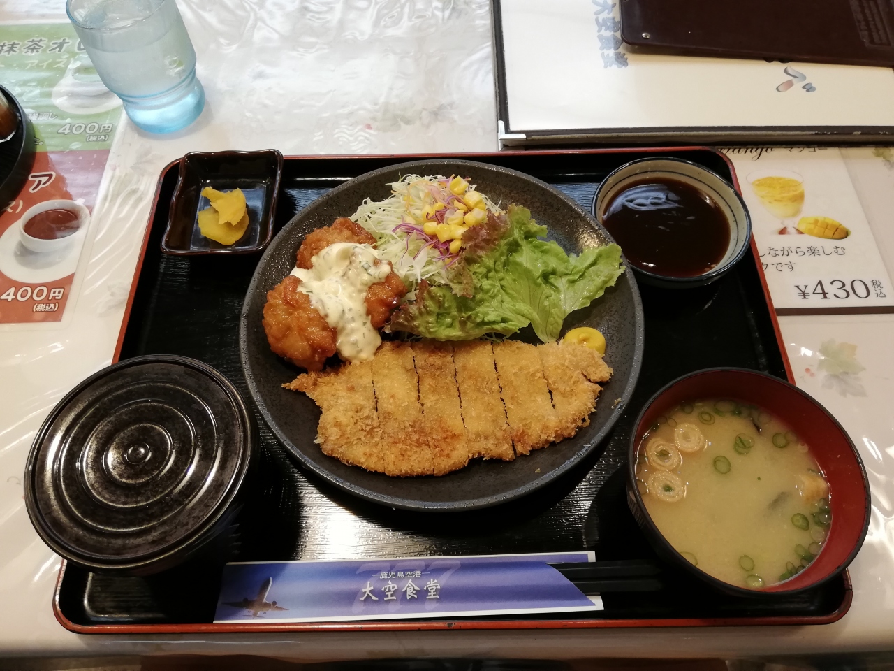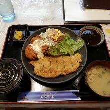 鶏の黒酢南蛮と黒豚カツの定食(1200円)にしました。