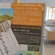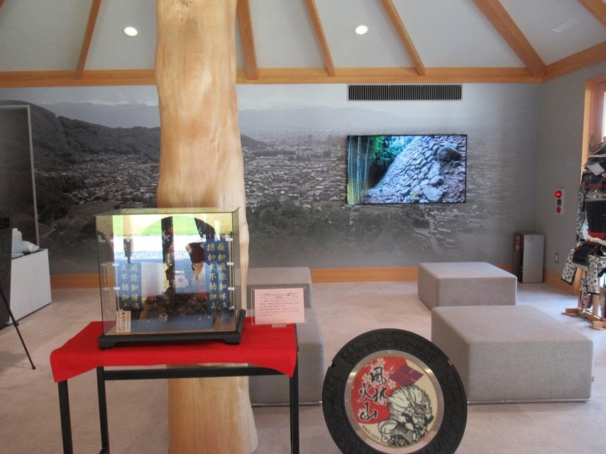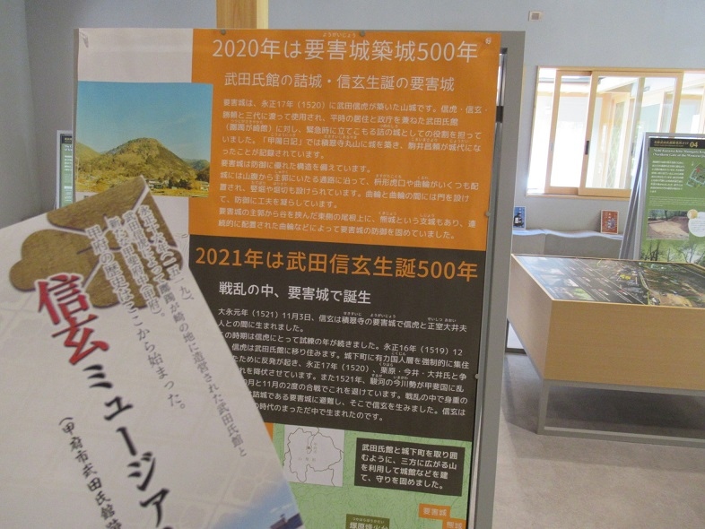 新型コロナウイルスの影響でマスクが欠かせない中、三密を避け日本100名城のひとつである「武田氏館跡」を訪問しました。武田信虎が1519年に築城した平城でお堀に架けられた朱色の橋を渡り鳥居へと進んで行くのですが武田神社が目立ち過ぎてお城って感じはしませんでしたね。そういう方はここ「甲府市武田氏館跡歴史館」に立ち寄ることをお薦めします。武田氏館跡の歴史や見どころについて紹介するガイダンス施設として2019年にオープンしました。常設展示室では武田氏三代をはじめゆかりある方たちなどをパネルを展示し説明しています。また有料の特別展示室では発掘調査された出土品や戦国時代の歴史について詳しく展示しています。映像での紹介もありわかり易いと思いますね。