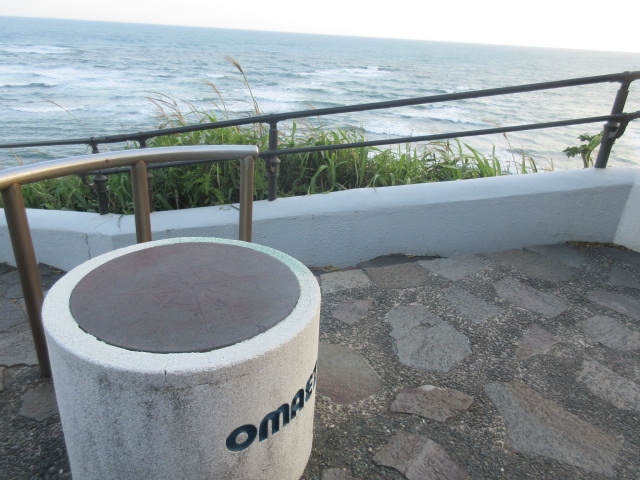 御前崎のケープタウンという場所にある展望所の一つです。かわいらしいネーミングですが、景色のいい場所です。みさきの広場という場所の駐車場に車を止めて、灯台方面に階段を上っていくと、そのとちゅにこの展望所がありました。丸いちょっとした石碑のようなものがあって、ここから見ると地平線が丸く見えるそうで。まあ、そんなに丸ってほどではないけれど、いい景色が眺められて十分満足です。