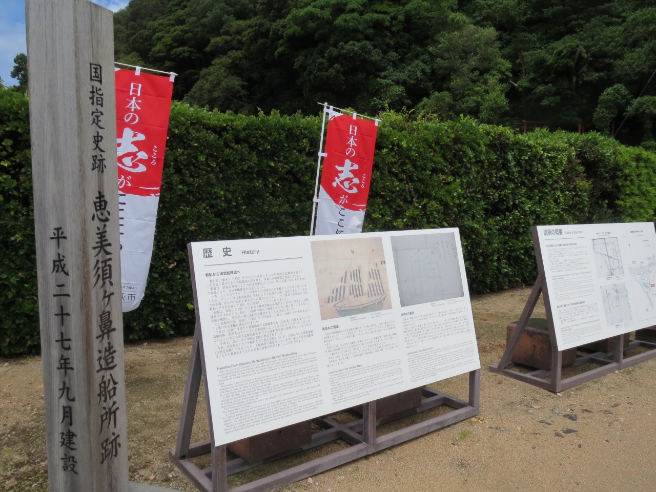 パット見、え?ここが造船所跡?...と思う人がほとんどだと思います。造船所の建物があって、中には巨大なドックがあるのでは?と先入観を持って、ここを訪れると期待外れとなります。防波堤らしき場所の上に立って周りを見渡すと、やっぱしここには造船所の跡らしきものがあったと推測できます。発掘途中の場所もあって、今後新しい発見があるかもしれません。案内看板が道路側にあるので、一通り目を通しておくと理解が深まるでしょう。