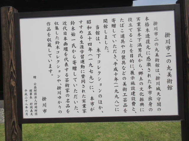 掛川の観光で、掛川まるとくパスポートというものを購入したので、セットで訪問した施設の一つです。大きくなハイですが、静かで落ち着いた感じの雰囲気はヨカッタデス。場所はお城のすぐ近くにあって、細密の工芸品とか日本画、日本刀の展示などの和風の展示の美術館でした。特に工芸品は精巧にできていてすごいと思います。
