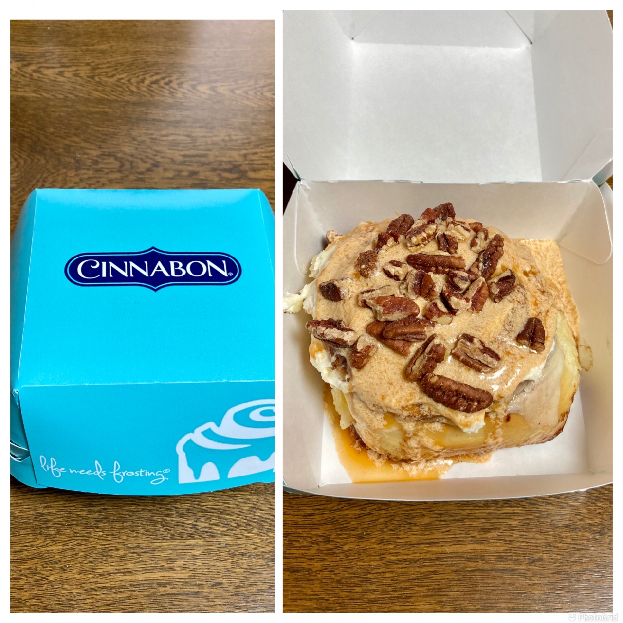 久しぶりのシナボン。目の前のキャラメルピーカンボンに心を奪われレギュラーサイズを購入。期待通りの美味しさでした。