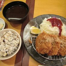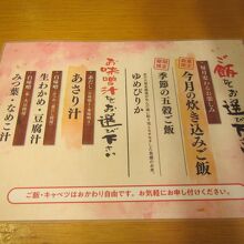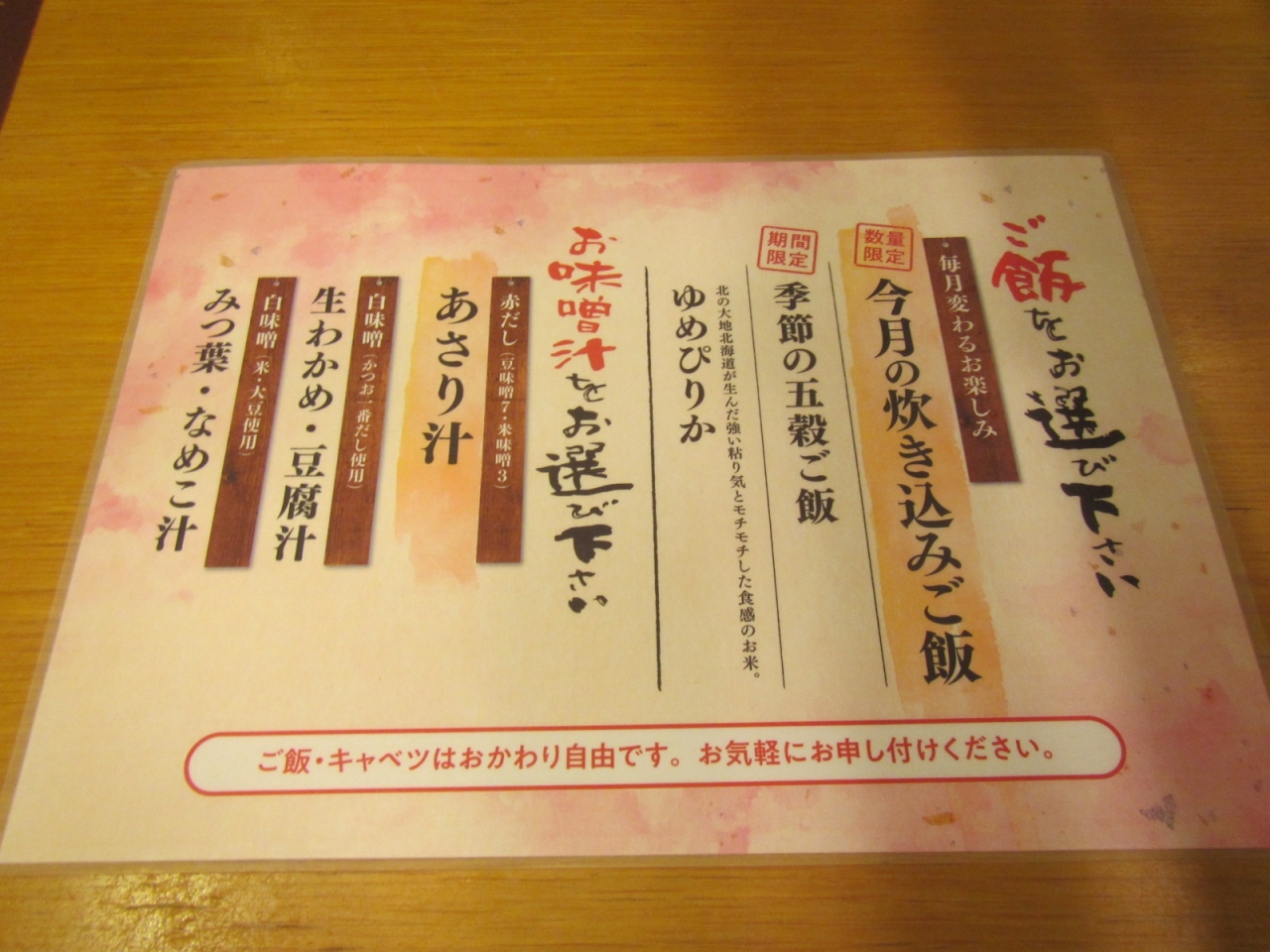 とんかつの定食メニューを頼むと、他のとんかつ店のようにこちらもご飯、キャベツはおかわり自由で、ご飯は炊き込みご飯など、味噌汁もあさり汁など一部は季節ごとに変わる数種類のメニューの中から選択できます。