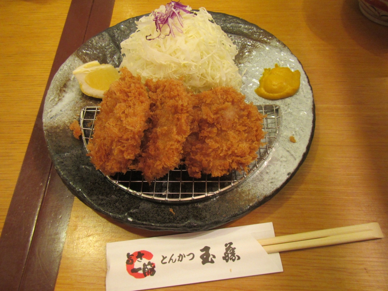 札幌駅周辺では、他に大丸8階のたづむら、パセオ地下1階およびステラプレイス6階の和幸、東急10階のまい泉などがありますが、玉藤では特に特性のソース(甘口)が美味しいような気がします。