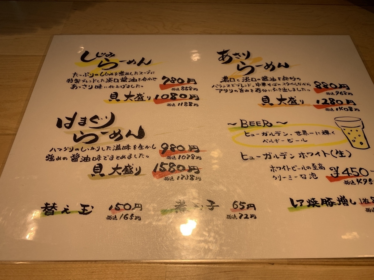 なかなか訪問する機会がなかったが、ようやく訪問できた店。じんめんグループのお店で貝の旨みをとことん出したスープのお店。今回は一番安いしじみラーメンと貝飯を注文。貝汁はやや薄く感じ、あまりパンチは感じなかった。しじみラーメンはしじみの旨みが存分に出ているが、薄口なので、濃いめが好きな人は違う種類が良さそう。次の種類が食べたくなる店ですが、本店には叶わないかな