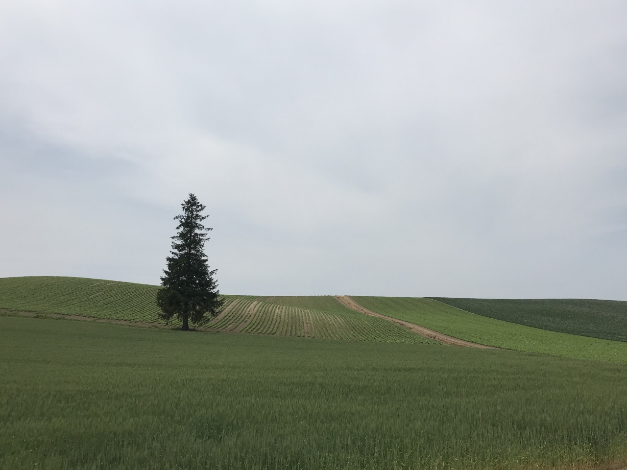 富良野方面からアクセスしました。場所は、マップコードを頼りに向かいました。木自体は、農地内にあるので、遠くから見ることになります。丘の上にポツンと一本だけある木はまさに「クリスマスツリー」。曇り空で青空が見られなかったのは残念でしたが、絵葉書のような景色が見られました。