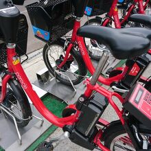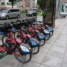 札幌市内にあるレンタルサイクルです。赤いおしゃれな車体です。数年前から電動自転車になり楽になりました。ただ、電動自転車導入で料金が少し高くなりました。それでも