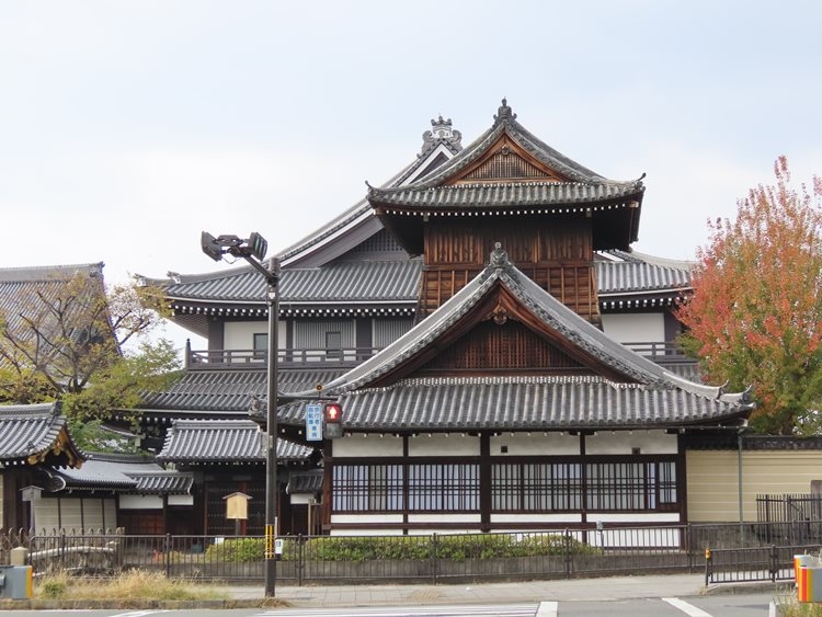 西本願寺の東北角に位置する重層の楼閣です。国の重要文化財に指定されています。建立は江戸時代後期の寛政年間。内部には大きな太鼓があり、周囲に時を告げる役割を果たしていました。幕末の一時期、新選組が屯所に使っていて、そのときの刀傷が残っているそうです。堀川通に面していてなかなか目立ちます。