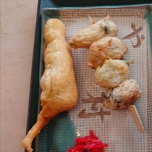 やいま串と魚てんぷらを食べました。小腹が満たされます。魚てんぷらはなんと百円というワンコインメニュー!!サクサク衣で美味しかったです。やいま串はかまぼこのような食感で弾力がありとても美味しかったです。付け合せの紅生姜がよいアクセントとなっていました。