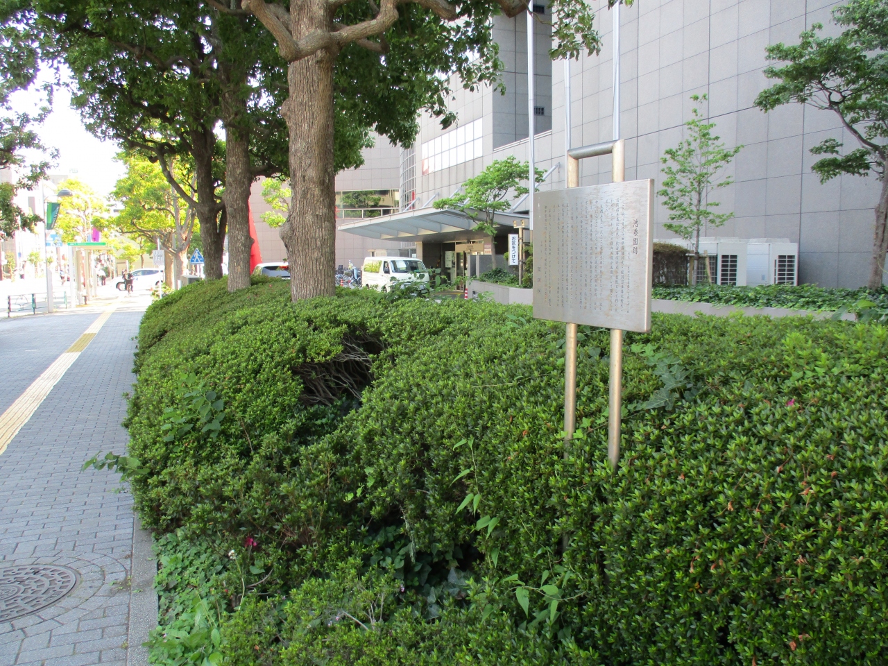 墨田区役所入り口近くで、案内表示板を見つけました。江戸時代にはこの辺りにとてもすばらしい大名の庭園が造られていて、明治のころまで憩いの場所だったそうです。今は区役所の建物やビルがたくさん立ち並んでいて、当時の面影は全く感じられなくて残念でした。