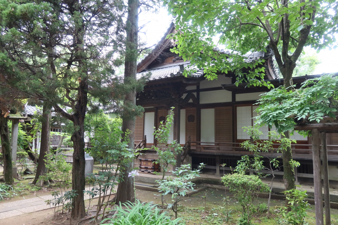 洗足池の東側、洗足池図書館の北隣にある寺院が妙福寺です。妙福寺がある場所は日蓮上人が池上に向かう途中、洗足池で休憩、その時に法衣を松に掛けた袈裟掛けの松がある日蓮宗の寺院。そのため御松庵とも呼ばれています。殆ど人は居ませんが、境内には竹林もあり、池の畔にも出られ、洗足池を眺められます。