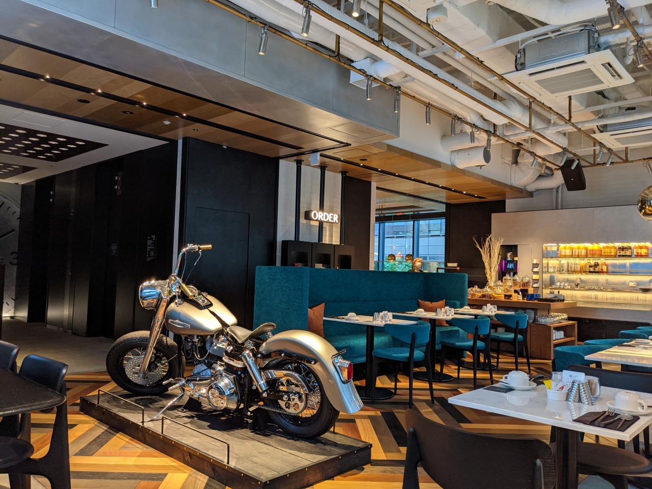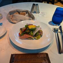 銀座にできたアロフト2階のおしゃれなレストラン。スタッフは美男美女ぞろいなのでおっさん一人で入るには気が引けるが致し方ない。朝食のほかランチ、ディナーもこちら。今回はプラチナ特典のランチで無料で食べたが、いやはやフルコースの上品なセットメニューに舌鼓を打ちました。