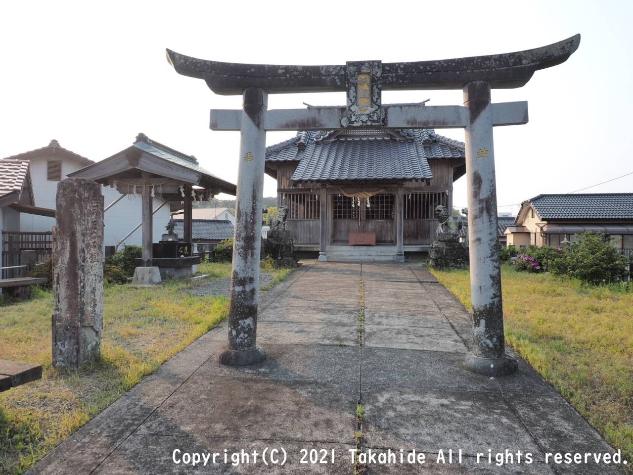 階段を上った先に境内があり、鳥居を潜った先の左手に手水舎、奥に小さな社殿があります。