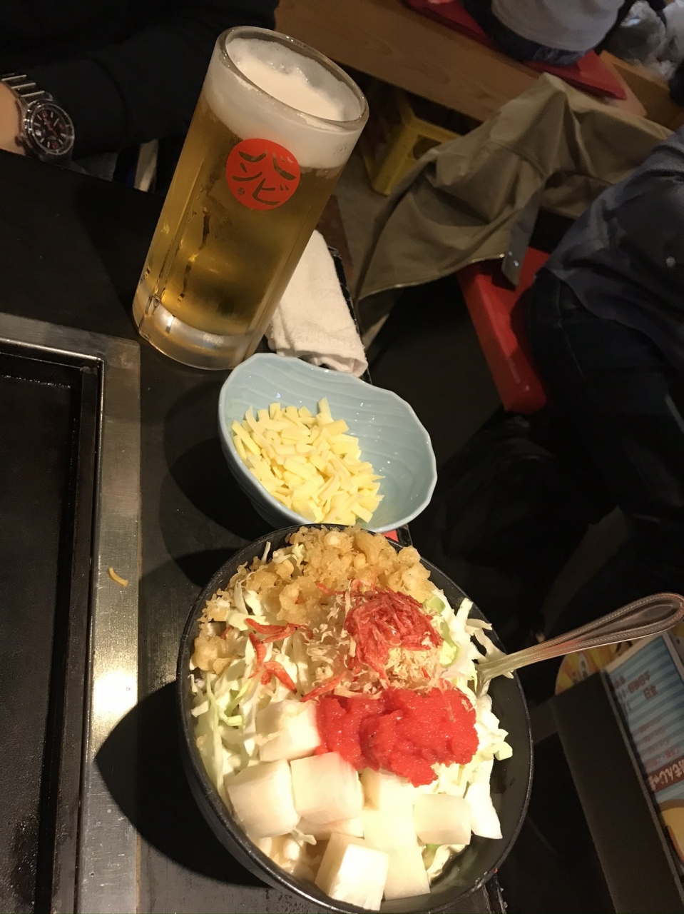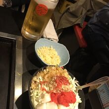 1年ぶりの再会ディナーはもんじゃ焼き!